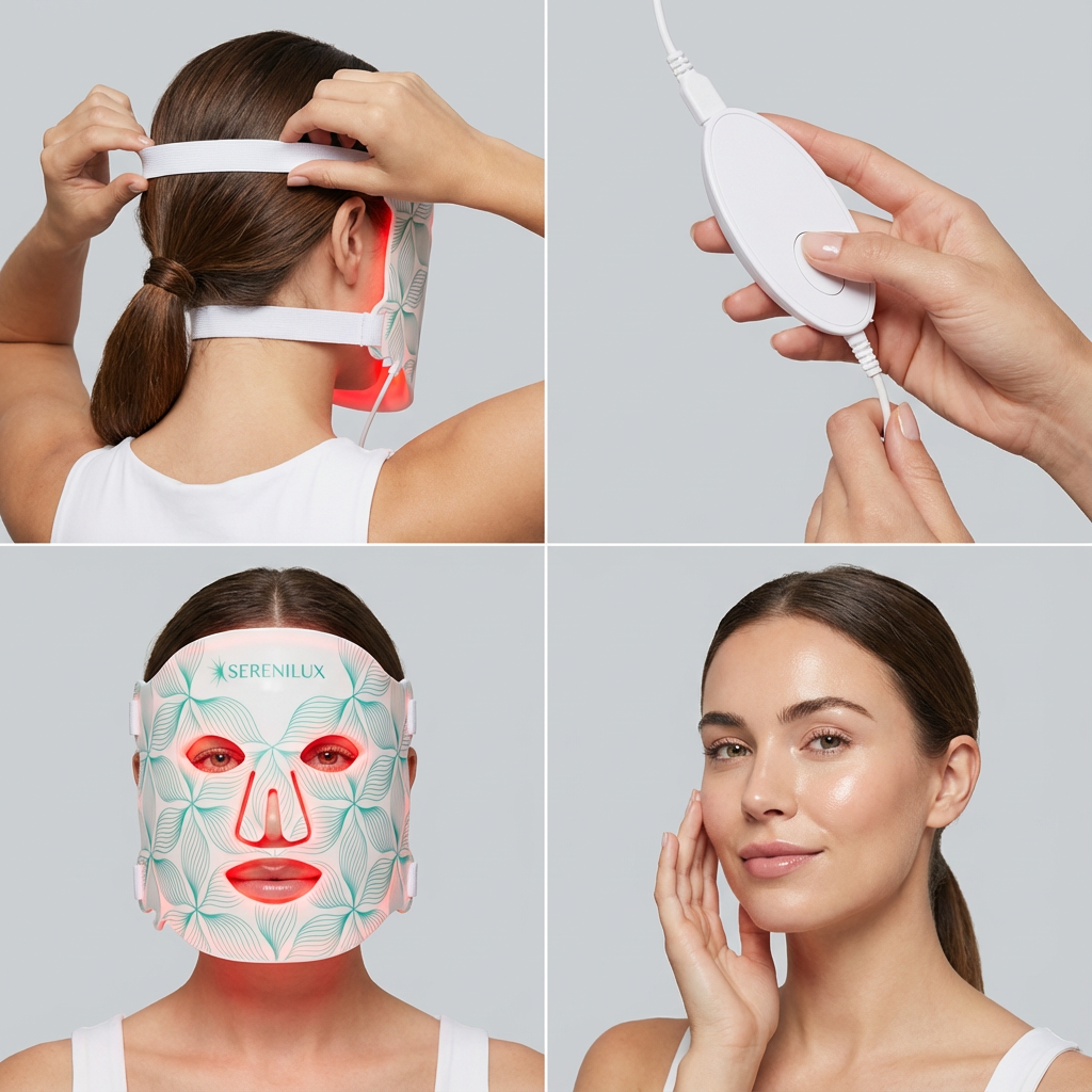 Contrairement aux masques 2 couleurs, SereniLux traite simultanément : rides, acné, rougeurs, pigmentation ET régénération cellulaire. Un seul masque, tous vos besoins.